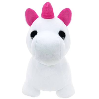 Light up the night with the Adopt Me Neon Unicorn Feature Plush! Now you can add the legendary Neon Unicorn to your Adopt Me collection! This 12” soft plush features three different light-modes that bring the magic of the in-game Neon Unicorn to life! Press the ear to activate the light-up features in the horn, mane, tail, and hooves! As a bonus an exclusive virtual item code is included! Collect all the Adopt Me plush, figures, and collectibles. Ages 6+