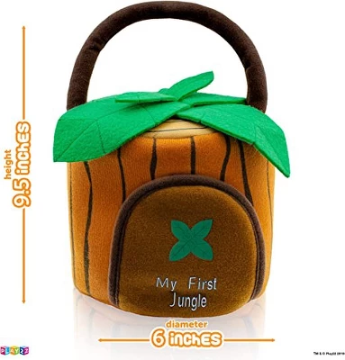 - 6 piece set includes Baby Stuffed Animals Includes Jungle House Carrier, Stuffed Elephant, Stuffed Tiger, Stuffed Lion, Stuffed Zebra, Stuffed Monkey