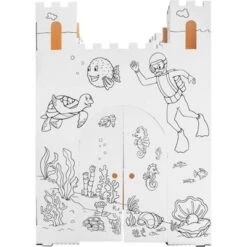 - EXPLORE UNDER THE SEA – This castle creates the perfect fort, house, tent to pretend, while also acting as a great place to read stories inside for even more adventure fun. Enjoy role playing with this cardboard fort- don’t forget to invite your friends over to hunt for sunken treasure, explore the coral, or race around playing underwater tag. This can also be a great group activity for kids!