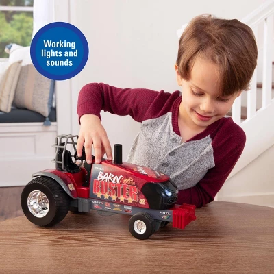 This is a 1/16 scale Case IH Pulling Tractor made by ERTL, the leader in farm toys for 60+ years! This pulling tractor is part of ERTL’s Big Farm series of playable toys. It features all new tooling. It is adorned with “Barn Buster” decoration and awesome hood graphics. This toy also has thunderous engine sounds and free rolling wheels with oversized tires with chrome rims. It measures over 14 inches long! According to the manufacturer, this pulling tractor is recommended for ages 3+ years, making it great for play.