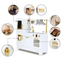 This double-slice wooden toaster makes this the perfect addition to any play kitchen where little cooks are at work. Encourages creative thinking and story-telling abilities and develops basic kitchen skills. Make a quick breakfast with a pop-up toaster, two slices of bread, butter, and honey. Butter tub includes removable lid, play knife included to mimic realistic movements, strengthening hand-eye coordination and fine motor skills. Measures 7″H x 7″L x 4.5″W.