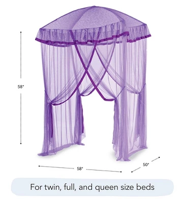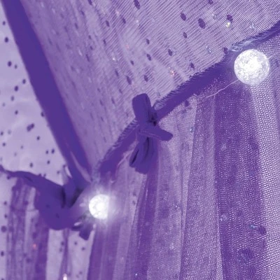 Turn an ordinary bed or indoor play space into a magical place to sleep, play, or just relax with the Sparkling Lights Light-Up Canopy. Little ones will disappear into a fantasy world draped in gauzy curtains and gently lit by LED lights strung inside the canopy! Two tie-back sides create an easy entrance to this secret hideout. Hang above a bed, or wherever your little dreamers love to play, to create a dreamy play space. Light and airy canopy includes a string of 30 bright LED lights (takes three AA batteries, not included) and fits over twin, full, or queen-sized beds. Stores easily. Imported.