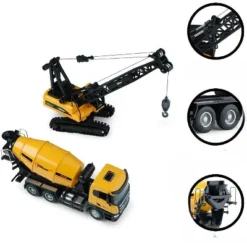 1:30 scale remote control loader construction truck with 5 channels. Fun little remote control that any child would love. Comes with 5 channels so you can control the main driving functions along with the front of the truck. Can be played indoors or outdoors. The truck can pick up small rocks or dirt. Endless hours of fun! (Batteries sold separately)