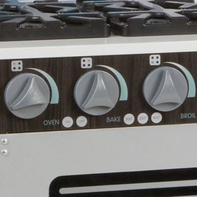 - Easy to assemble charcoal-colored wooden modern play kitchen–roomy enough for multiple kids to play at once