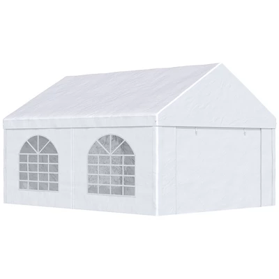 Outsunny’s extra large party tent can set up a shelter for all sorts of outdoor events. Excellent for wedding receptions, graduation parties, or extra-large barbeques, it offers four stylish cathedral-esque windows. These windows, together with its tent top, provide a cool and comfortable space underneath that keeps out UV and is sunburn free. Fit up to 20 guests and enjoy the soothing breeze with the ease of two zipper doors. With strong steel and superior style, the party is on with Outsunny.