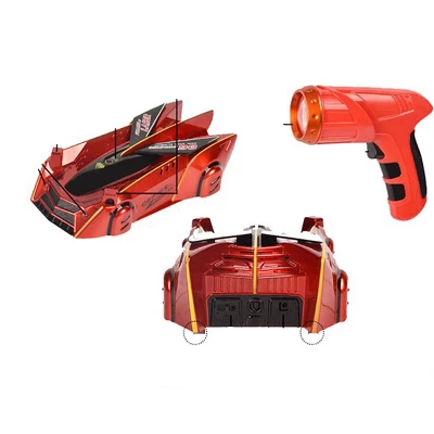 Chase the light with this laser-guided race car. The wall-climbing, ceiling-crawling speedster follows the laser light beam no matter where you point it — for hours of off-roading adventures for your little one. Use the laser controller to point the laser light beam on the wall, ceiling or ground, and the Laser race car will chase the light in any direction! Batteries not included