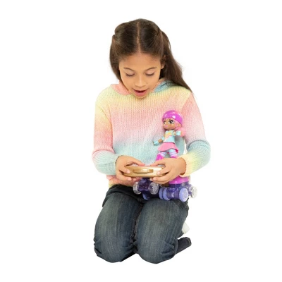 The Rock n Rollerskate Lightning Luna doll comes with a remote control so kids can perform rollerskating stunts! Your little one will love learning how to use this RC toy to have Lightning Luna execute tricks like spins and splits! Lightning Luna also moves forwards and backwards, lights up, and plays music!