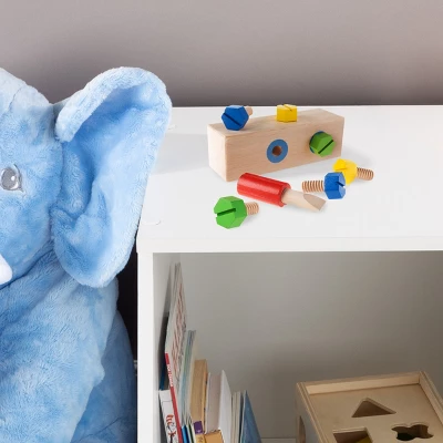 - QUALITY CONSTRUCTION- The block is made from wood and is sanded smooth to be safe for little hands, The included screwdriver and screws are also constructed from wood and are painted in bright, vivid colors