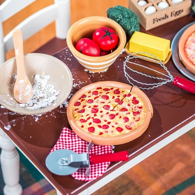 - Realistic “Pizza Queen” pepperoni pizza comes boxed & ready to serve 18″ dolls.