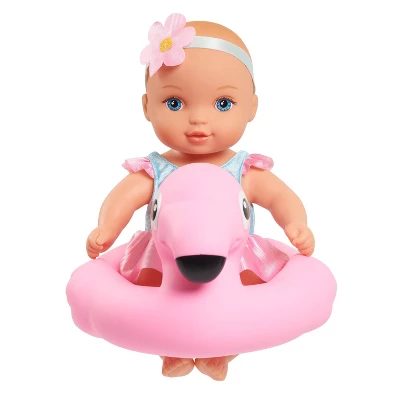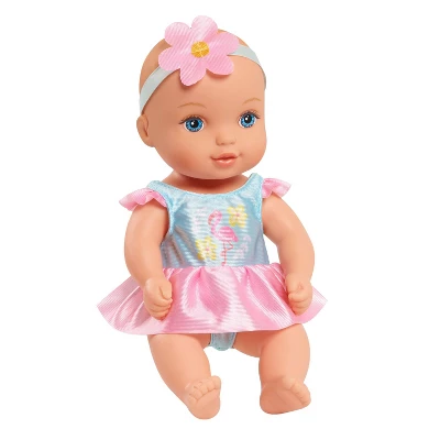 - WaterBabies Bath Time Fun Doll comes dressed in cute flamingo outfit.